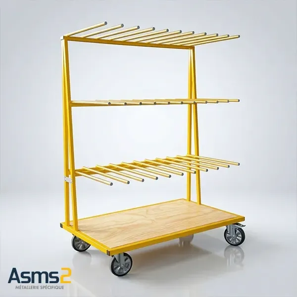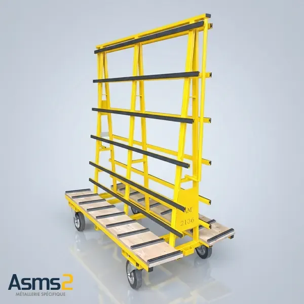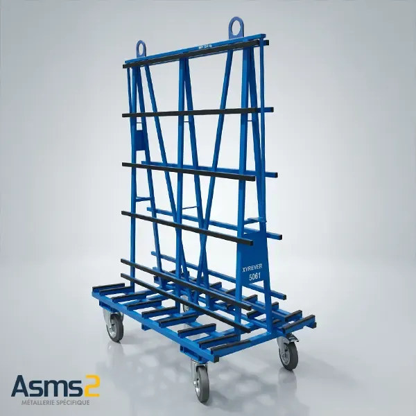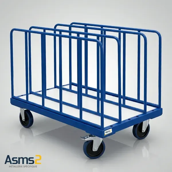 Découvrez le Chariot verrier Bi-versant, conçu pour transporter en toute sécurité verres, menuiseries et plaques. Robuste et personnalisable, il répond aux besoins des professionnels exigeants en manutention.
